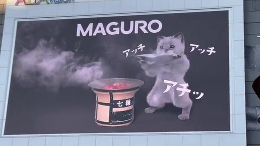 В Токио огромный 3D-котёнок прыгает по зданиям за едой