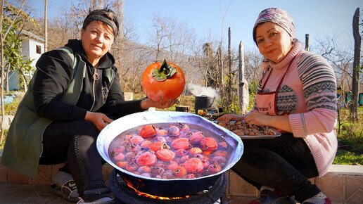 Сбор красной хурмы в деревне - Десерт из хурмы с орехами