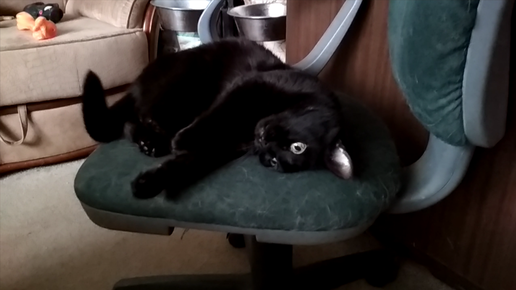 Кошка подтягивается на когтях и охотится на руку хозяина