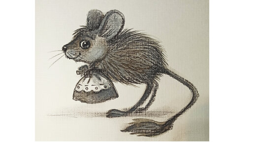 Серенький зверек с подарочком. Рисунок сухой пастелью и карандашами.