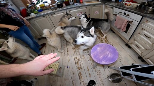 Уууу - за что ты нас так не любишь, с голоду моришь - хаски обиделись