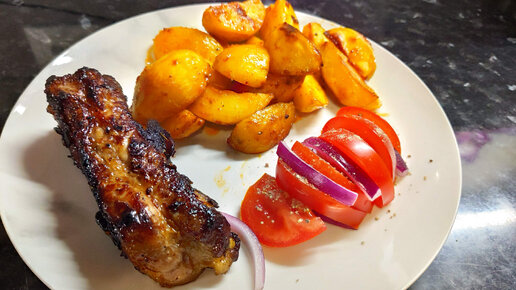 От такого ужина мало кто откажется. Свиные ребра с запеченным картофелем