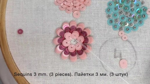 Цветок из пайеток. Вышиваем плоскими пайетками.