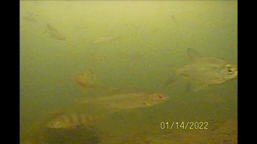 Поймал сначала окуня в камеру, а потом и на блесну)