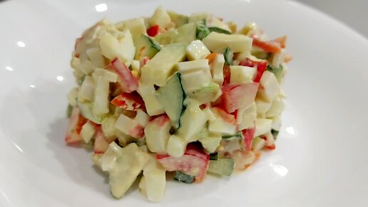 Звучащий по-новому салат с крабовыми палочками. Свежий, лёгкий и готовится очень быстро!