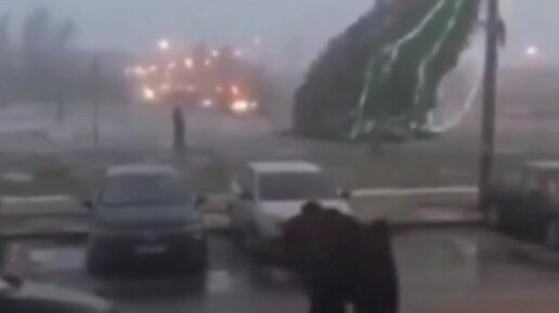 В Белоруссии сильный ветер ронял новогодние елки и сбивал с ног людей (14.01.2022).