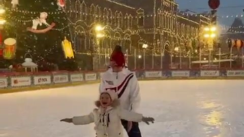 Анна Банщикова с дочкой Машей на ГУМ-катке