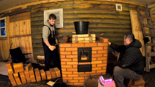 бюджетная печка 5ты день работы, ставим дверцы и возводим стены под уровень в 4 руки
