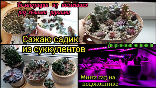 Сажаю садик из суккулентов. Эхеверии (Эчеверия), крассула, пахифитум. Мини сад на подоконнике