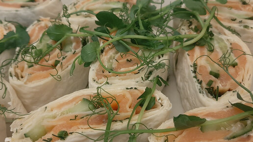 Делается элементарно, выглядит шикарно. Рулет из лаваша с красной рыбой, творожным сыром и свежим огурцом. Делюсь рецептом