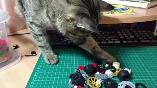 Реакция кошки на кубики lego
