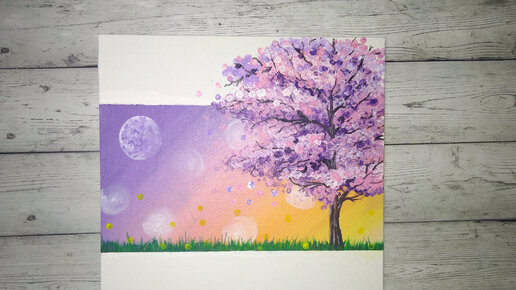 Как нарисовать дерево🌳Мультяшный пейзаж для начинающих👍