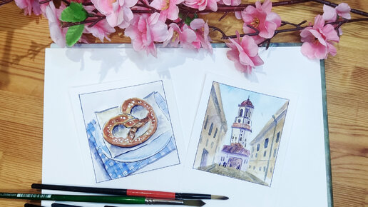 Рисую сразу два скетча. Выборгский крендель и Выборгская часовая башня