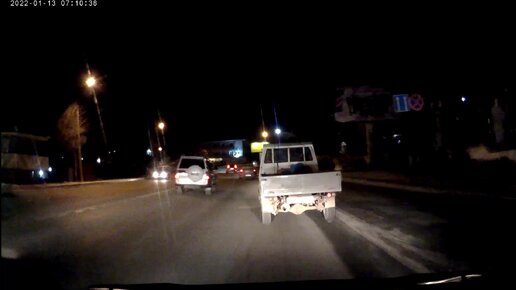 Видео с регистратора №18. Обгон под знак на скользкой дороге, опасное перестроение