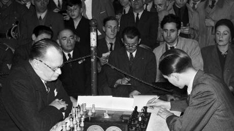 Керес ошибается черным ферзем - и ловкий Алехин уже не отдает инициативу до конца игры (Зальцбург, 1942, 1-0) - доигрываю матом
