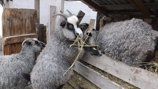 Пуховые козы - пушистики. Козы едят сено, лазят и прыгают