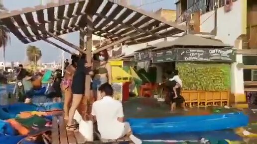 Цунами из - за извержения вулкана Хунга - Хонга - Хунга - Хаапай в Паракасе, Перу (16.01.2022).