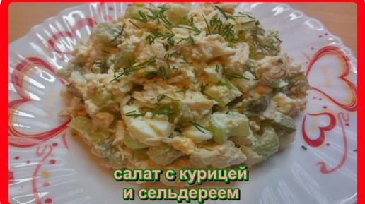 салат из КУРИНОЙ ГРУДКИ С СЕЛЬДЕРЕЕМ с яйцами и солеными огурцами
