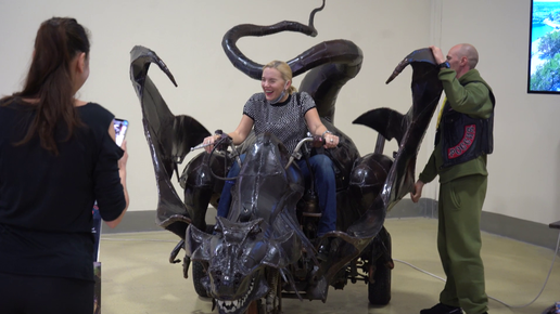 Разный мототранспорт на выставке в ЦВК "Экспоцентр" в городе Москве