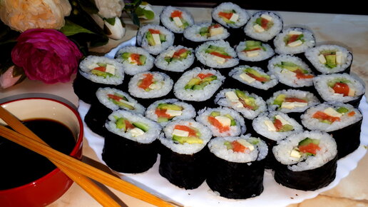 Как сделать роллы. РОЛЛЫ С АВОКАДО, ОГУРЦОМ, КРАСНОЙ РЫБОЙ.