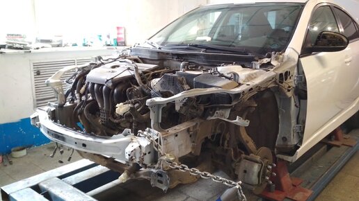 Восстановление геометрии кузова после ДТП на Мазде 6.