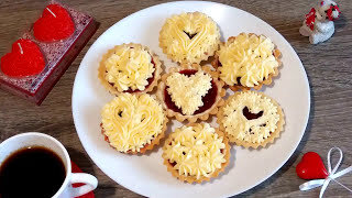 Пирожные корзиночки Валентинки. Песочное пирожное с заварным кремом.