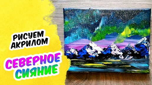 Как нарисовать СЕВЕРНОЕ СИЯНИЕ в горах акрилом | Рисуем горный пейзаж красками