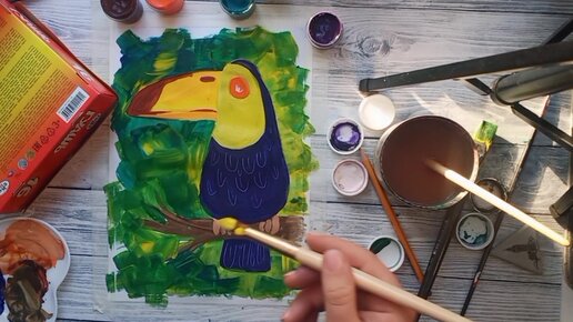 Рисуем тукана гуашью.