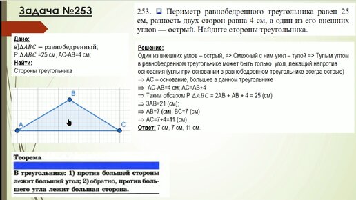 Задача №253 Геометрия 7 класс. Атанасян. Соотношение углов и сторон в треугольнике