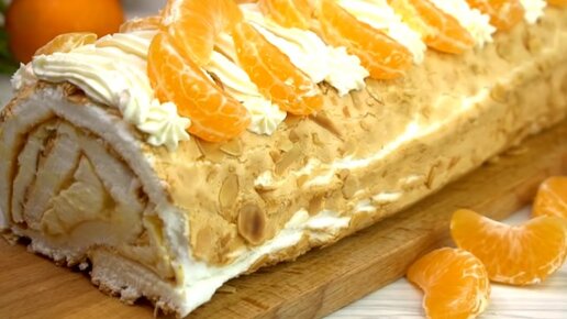 Рулет с мандаринами к праздничному столу, которым я удивила гостей. Рецепт не сложный, вкус насыщенный и неповторимый
