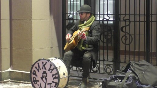 Фрикинг Аут на старом Арбате исполняет на гитаре песню "По секрету всему свету"