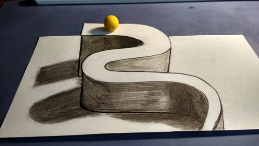 Как нарисовать спуск. Рисунок 3д иллюзии. Куда покатится шарик ?