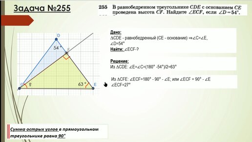 Задачи №254, 255 Атанасян. Геометрия 7 класс. Прямоугольные треугольники