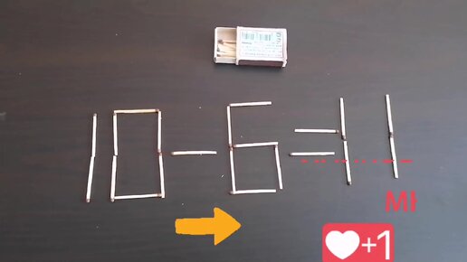 Как быстро получить верное равенство 10-6=11 переместив 1 спичку. Показываю свой вариант ответа