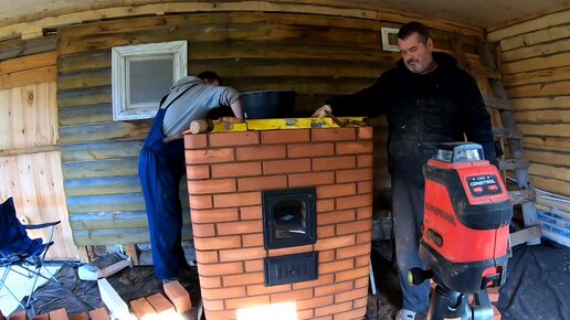 6 день стройки печки, выводим печку под трубу