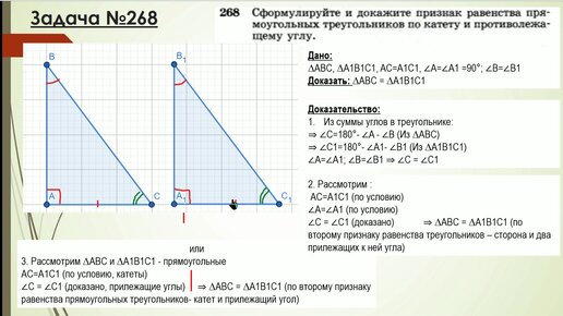 Задача №268 Атанасян. Геометрия 7 класс. Прямоугольные треугольники
