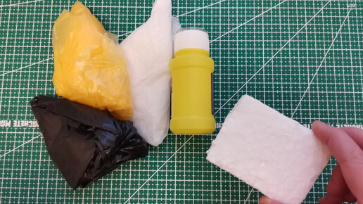 Взяла кусочек пенопласта, пакеты и баночку от пузырей - садовая фигурка готова