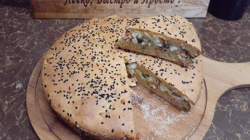 Заливной пирог с копченой курицей, зеленым луком и яйцом.