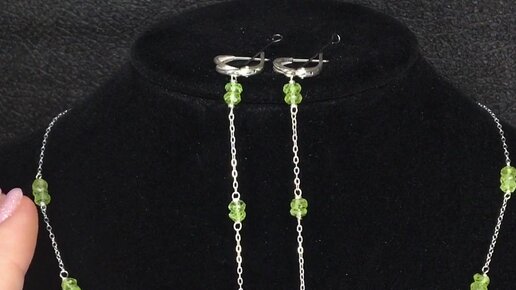Комплект колье и серьги с хризолитом #ручнаяработа #колье #серьги #комплектукрашений #хризолит