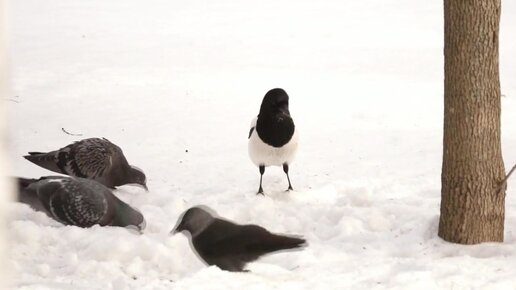 Птицы зимой за едой