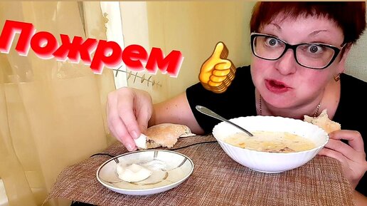 Жру, почти молча,сил нет/сырный суп с рисом и курицей/хорошо, что готовить ненадобно😊