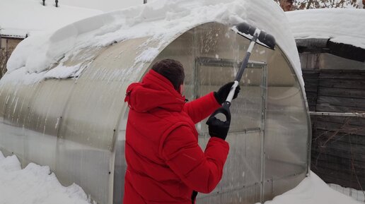 Спасаю теплицу из снежного плена после обильных снегопадов