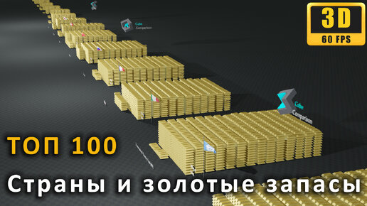 Золотые запасы стран 2022. Сравнение в 3D + Флаги стран