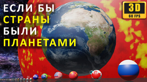 Если бы страны были планетами. Сравнение размеров стран в 3D с флагами.