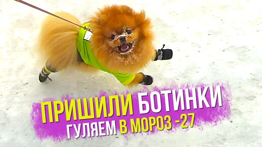 Померанский шпиц гуляет в -27. Пришили ботинки к куртке для собак