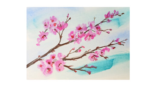 Цветущая ветка сакуры. Акварельная зарисовка.