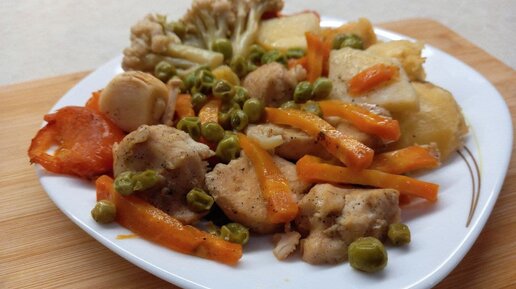 Вкусное и ароматное! Мягкое мясо, запечённая картошка и овощи. За счёт приготовления в одной посуде экономится время