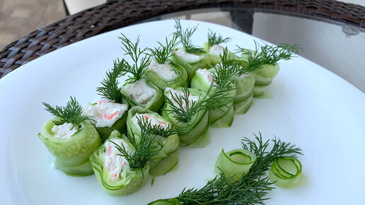 Супер-простой рецепт свежей закуски- роллы из огурца