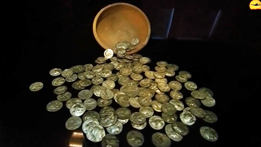 Медные, серебряные, золотые монеты и целые клады монет в археологическом музее Анталии.