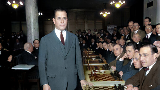 Хосе Капабланка дает сеанс на 40 досках в Нью-Йорке, 1922. Один из шедевров случился на этой доске